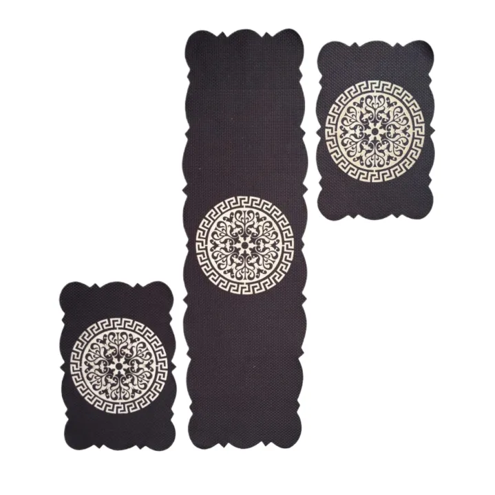 Enhance your dining or dressing area with the Laser Cut 3-Piece Jute Table Runner Set—a perfect blend of elegance and craftsmanship. This premium-quality set includes one runner (12″ x 39″) and two mats (12″ x 18″), designed to add a touch of luxury to any space.