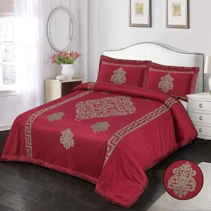 Luxury Velvet Bedsheet Set with Laser Cutting Motif & 2 Pillow Covers (Red)Luxury Velvet Bedsheet Set with Laser Cutting Motif & 2 Pillow Covers (Red)